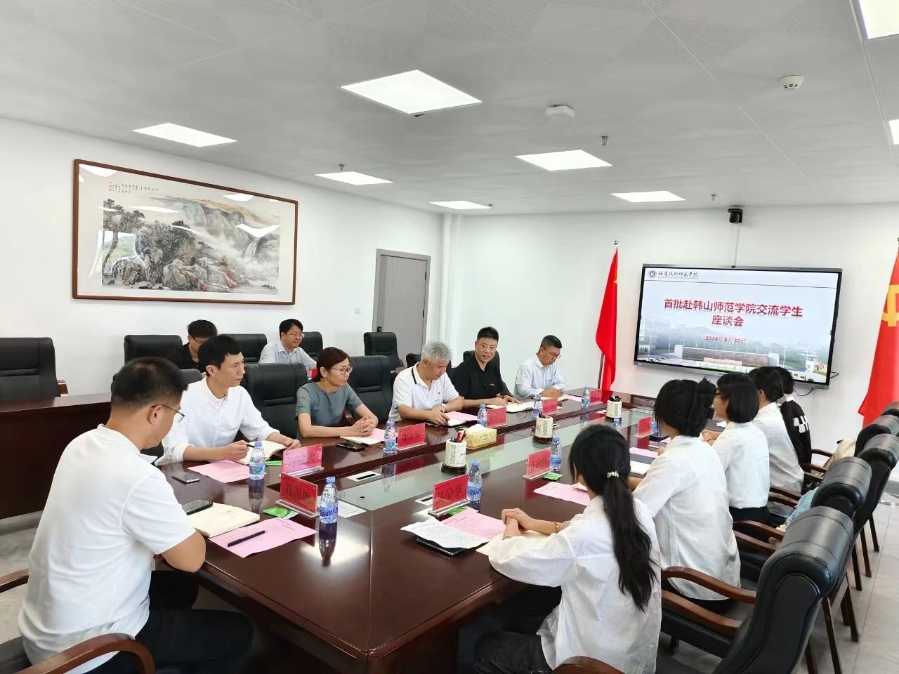 8月30日上午,我校在五马山校区林联兴科技楼第一会议室召开首批赴韩山师范学院交流学生座谈会。校党委书记赖海榕教授与同学们亲切座谈。教务处、学生工作部、食品与生物工程学院负责人及教师代表参加了会议。