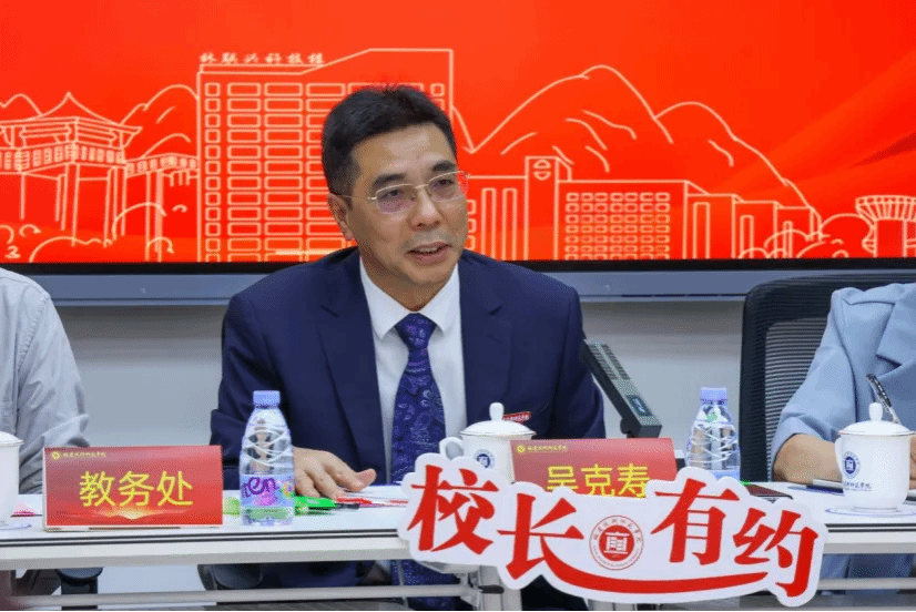 5月28日下午,我校在五马山校区“一站式”学生综合服务中心举办2025年“校长有约”沙龙活动。校长吴克寿教授与学生代表面对面座谈、零距离交流。教务处、学生工作部、后勤管理处、校团委等相关职能部门负责人参加了座谈会。