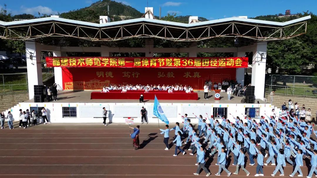 11月1日上午,福建技术师范学院第一届体育节暨第36届田径运动会在五马山校区乐森田径场开幕。校领导赖海榕、林海峰、张翼、商光美、姜兴山出席开幕式。各单位党政主要负责人,在融附属学校、共建学校主要负责人,师生代表参加了开幕式。