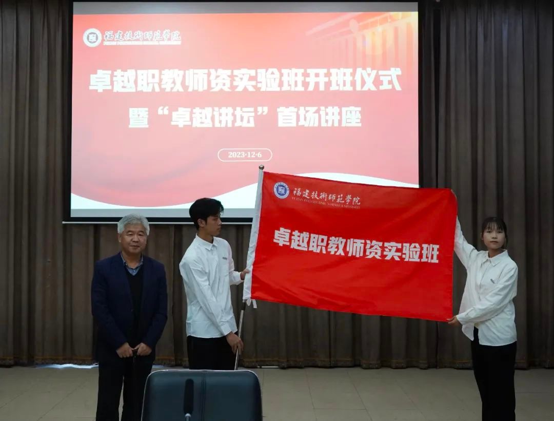 开班仪式上,赖海榕书记为“卓越职教师资实验班”授旗。教务处负责人宣读了首届“卓越职教师资实验班”学生名单。