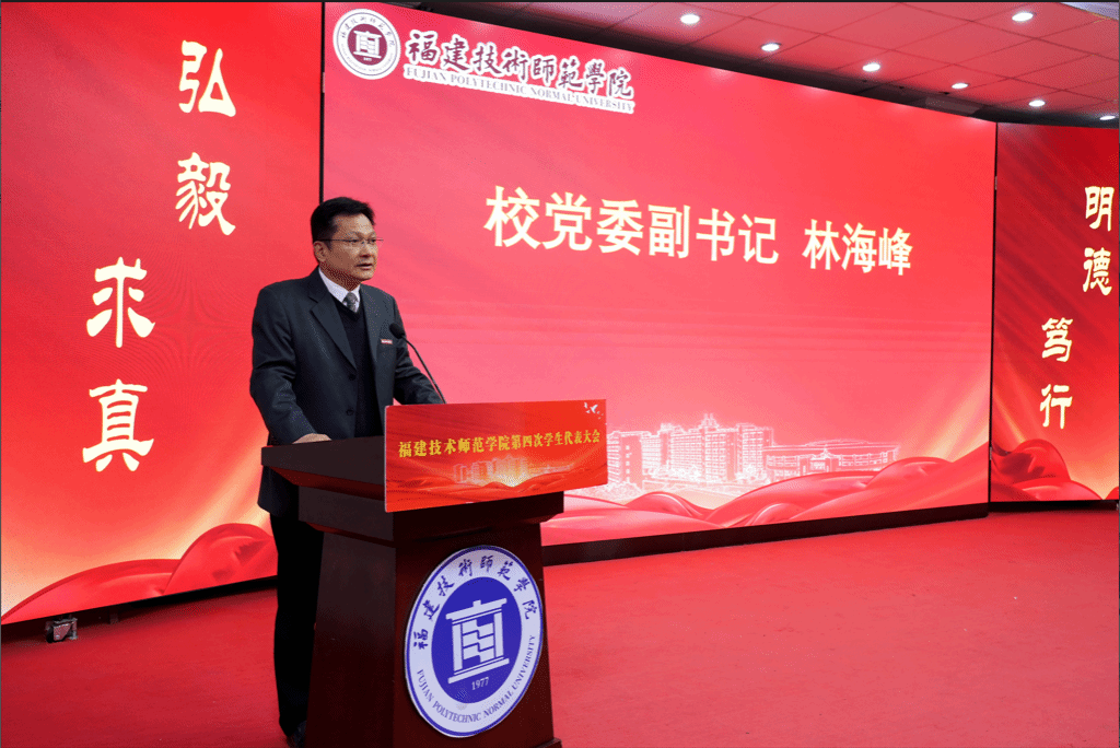 12月6日下午,我校在五马山校区科学楼金泰学术报告厅召开校第四次学生代表大会。校党委副书记林海峰出席并致辞。校学生工作部、校团委和各二级学院团委负责人、研究生代表列席会议,109名学生代表参加会议。