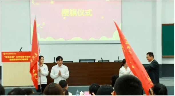11月22日,我校2023年校“青年马克思主义者培养工程”大学生骨干培训班开班仪式暨2023年基层团支部书记培训班开班仪式在五马山校区弘毅苑报告厅(1)举行。校党委副书记林海峰出席活动,为培训班学员代表赠书、授旗,并作专题辅导报告。校团委全体成员、各二级学院团委负责人,“青马工程”大学生骨干培训班学员、团支部书记培训班学员等200余人共同参与本次活动。