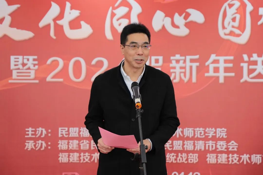 吴克寿校长代表学校在活动启动仪式上致辞。吴校长指出,翰墨飘香、群贤会聚。民盟福建省委会和我校党委开展的活动,是我们深入学习贯彻习近平文化思想的有效举措,是对学校事业发展的激励与鼓舞。他衷心希望莅校的民盟领导和书画大家,发挥专业优势、资源优势,在政策获取、资源引入、产教融合、项目合作等方面,为我校文化艺术学科的建设发力发声,助推学校高质量发展。