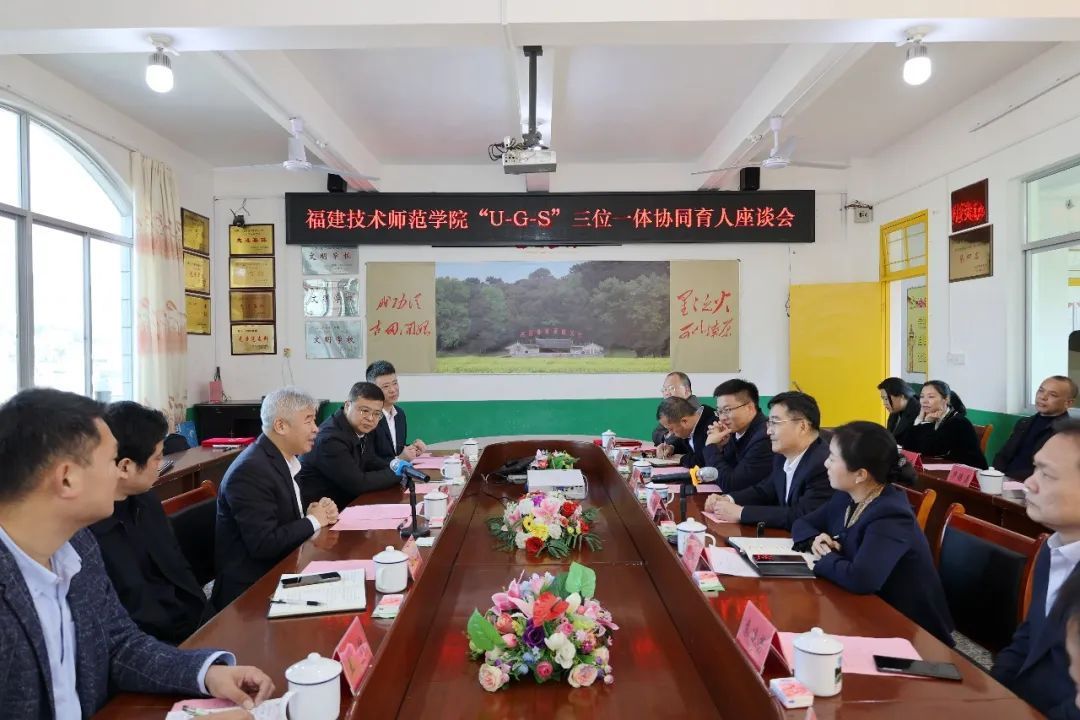 1月14日,福建技术师范学院“U-G-S”三位一体协同育人座谈会暨课程思政实践基地授牌仪式在上杭县古田中学举行。校党委书记赖海榕,副校长姜兴山,龙岩市教育局四级调研员廖敏健,上杭县委常委、古田镇党委书记华娟,上杭县人民政府副县长刘锦生,上杭县教育局局长袁晓芳,上杭县古田镇党委副书记、镇长梁尚荣,上杭县古田中学书记、校长陈益柱,上杭县古田中心小学书记、校长赖焕明等出席仪式。我校党政办公室、教务处负责人及相关科室负责人,上杭县古田中学、古田中心小学有关人员等共同参加了活动。