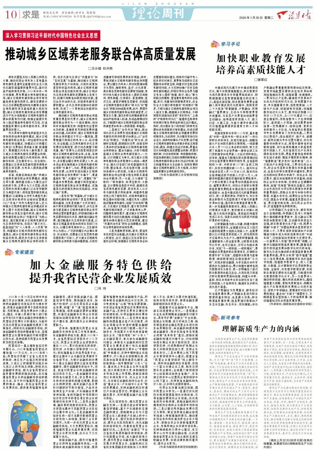 1月30日,《福建日报》理论周刊求是版刊发我校侨兴经济与管理学院冯玲教授理论文章《加大金融服务特色供给 提升我省民营企业发展质效》。文章全文如下: