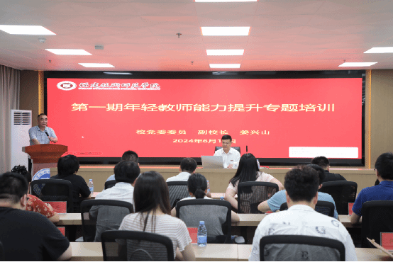 6月12日晚,学校第一期年轻教师能力提升专题培训班在五马山校区联兴楼集贤厅进行集中培训。副校长姜兴山作了以《礼仪与文化》为题的辅导报告,第一期年轻教师能力提升专题培训班学员,校党委组织部有关同志参加了学习。