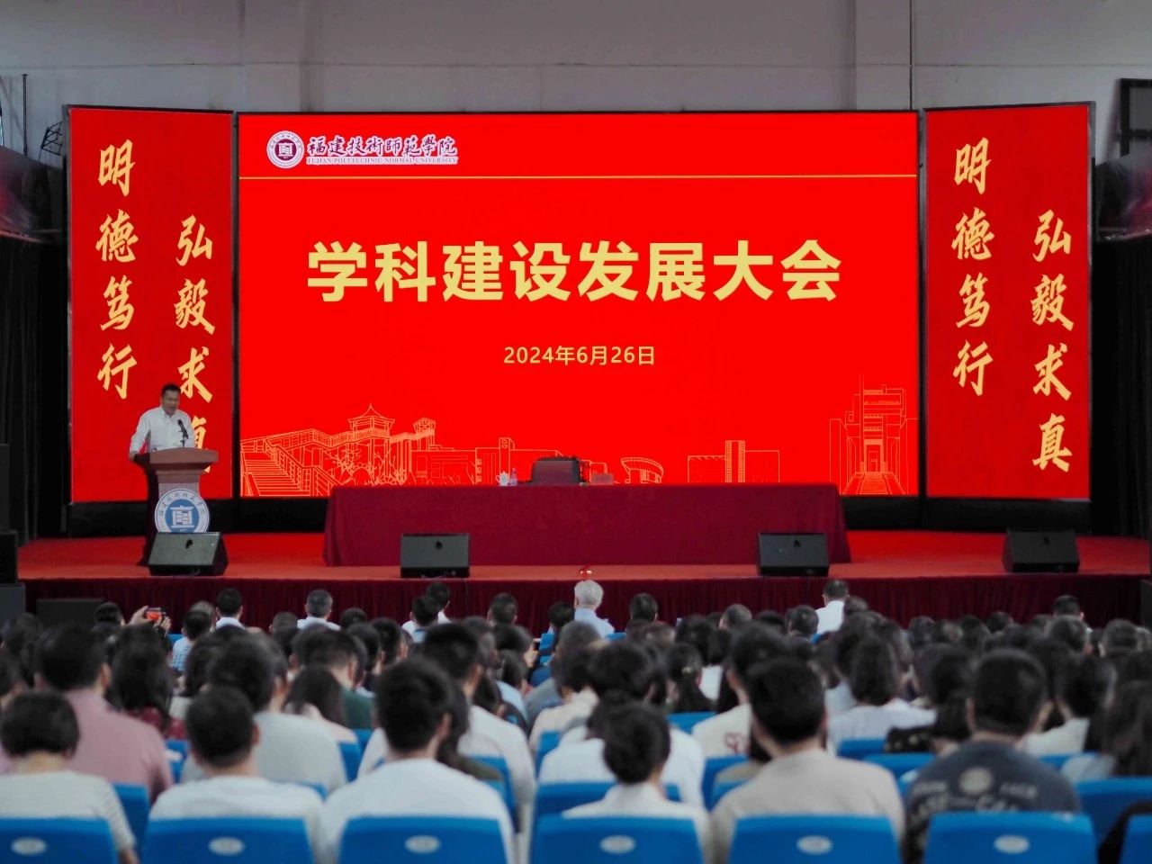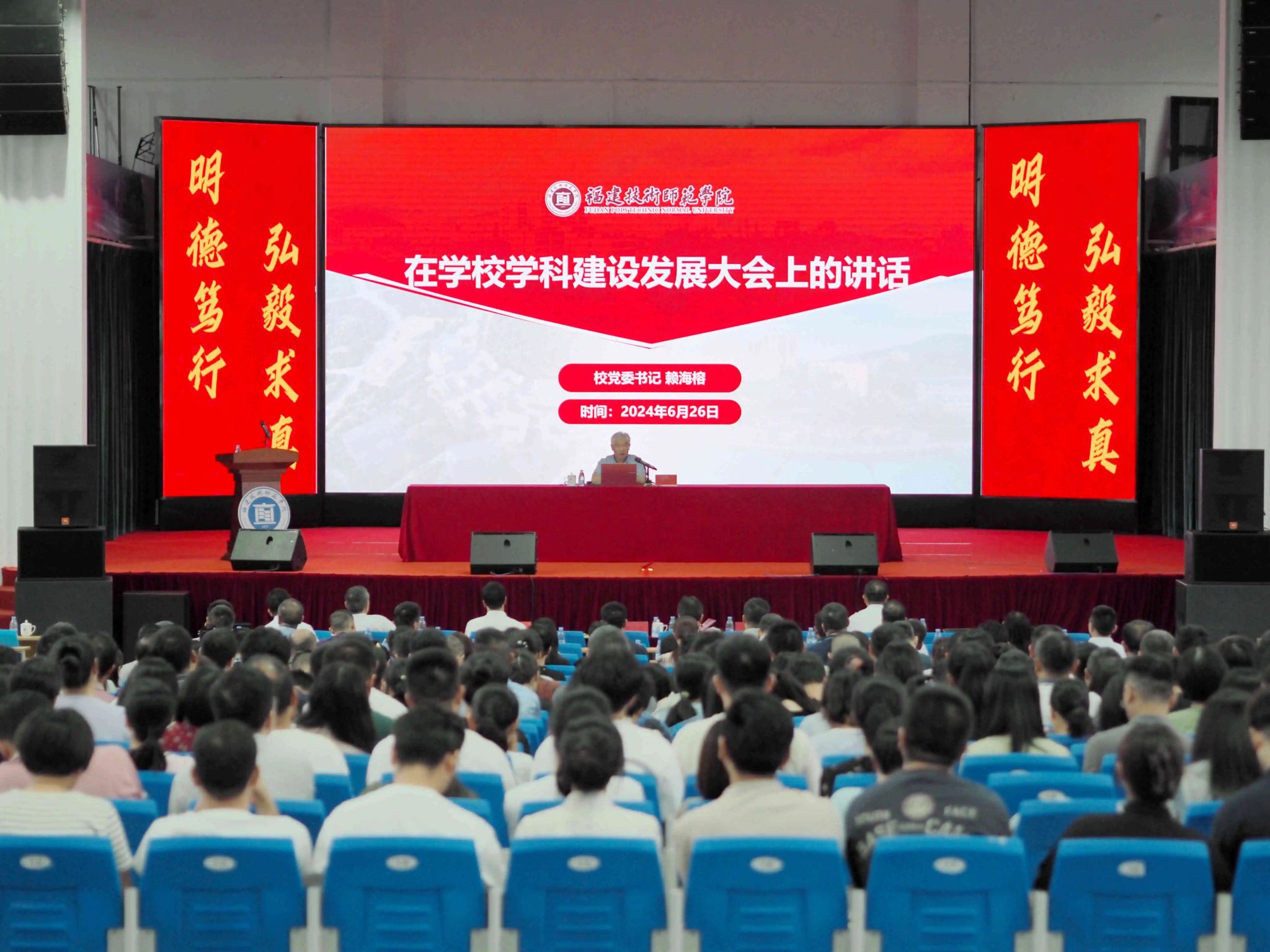 为深入贯彻落实国家、福建省对高等教育学科建设的战略部署和福建省经济社会发展对人才的需求,交流学科建设的新理念、新经验,探讨学科交叉融合的新路径、新方法,如期完成学校“十四五”教育事业发展专项规划提出的任务目标,推动学校学科建设的持续、健康、快速发展,6月26日下午,我校学科建设发展大会在石竹山校区学生活动中心召开。校党委书记赖海榕,校党委副书记、校长吴克寿,校党委副书记林海峰,校党委委员、纪委书记、监察专员张翼,校党委委员、副校长姜兴山出席会议。会议由林海峰副书记主持。