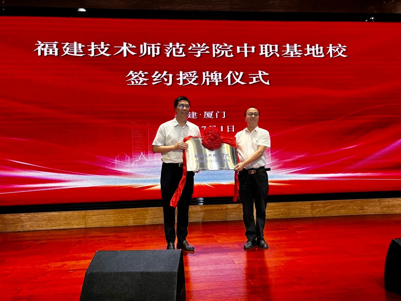 在与会领导的见证下,吴克寿校长分别与廖怀东校长、黄勇校长签订合作共建协议,并为厦门信息学校、厦门市集美职业技术学校等2所中职基地校授牌。