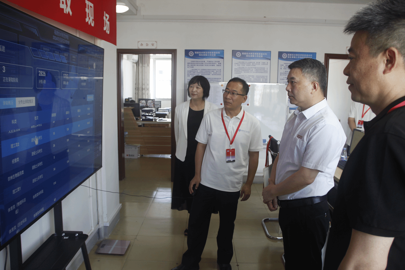 7月17日上午,校党委委员、纪委书记、监察专员张翼深入学校招生录取现场,对招生录取工作进行监督检查。校纪检监察室、教务处负责人参加了有关活动。在录取工作现场,张翼书记认真听取工作汇报,详细了解学校2024年本科招生录取工作的职责分工、录取批次安排、当前录取进度等情况,并向暑期奋战在一线的招生录取工作人员表示亲切的慰问。