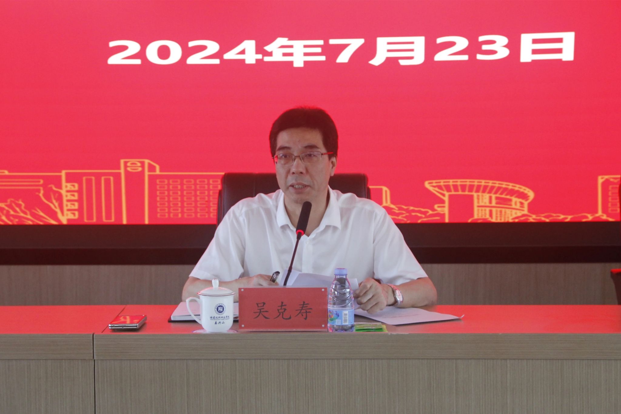 为进一步做好今年第3号台风“格美”的防范工作,切实保障师生员工生命财产安全,7月23日下午,我校在五马山校区林联兴科技楼集贤厅召开台风“格美”防御工作部署会。校长吴克寿主持会议并讲话。副校长姜兴山,校防台风应急处置工作组成员单位、各二级学院党组织负责人参加会议。