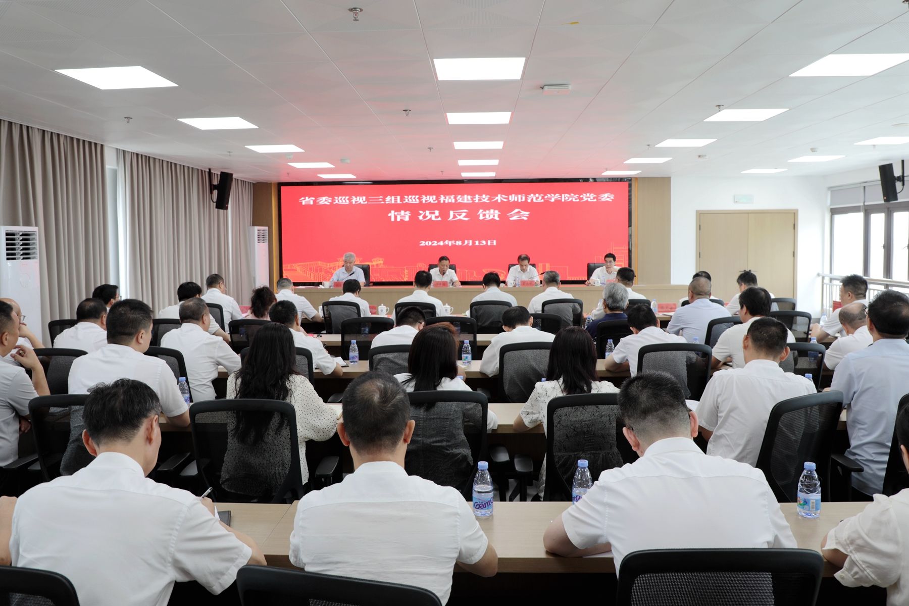 根据省委巡视工作统一部署,2024年3月26日至5月8日,省委巡视三组对福建技术师范学院党委开展了巡视。8月13日上午,省委巡视三组向福建技术师范学院党委反馈巡视情况。省委巡视三组,省纪委、监委第三纪检监察室,省委巡视办有关同志,校领导班子成员,纪检监察机构、组织人事部门负责人,内设机构主要负责人,部分担任过班子成员的退休老同志,干部、群众代表参加会议。
