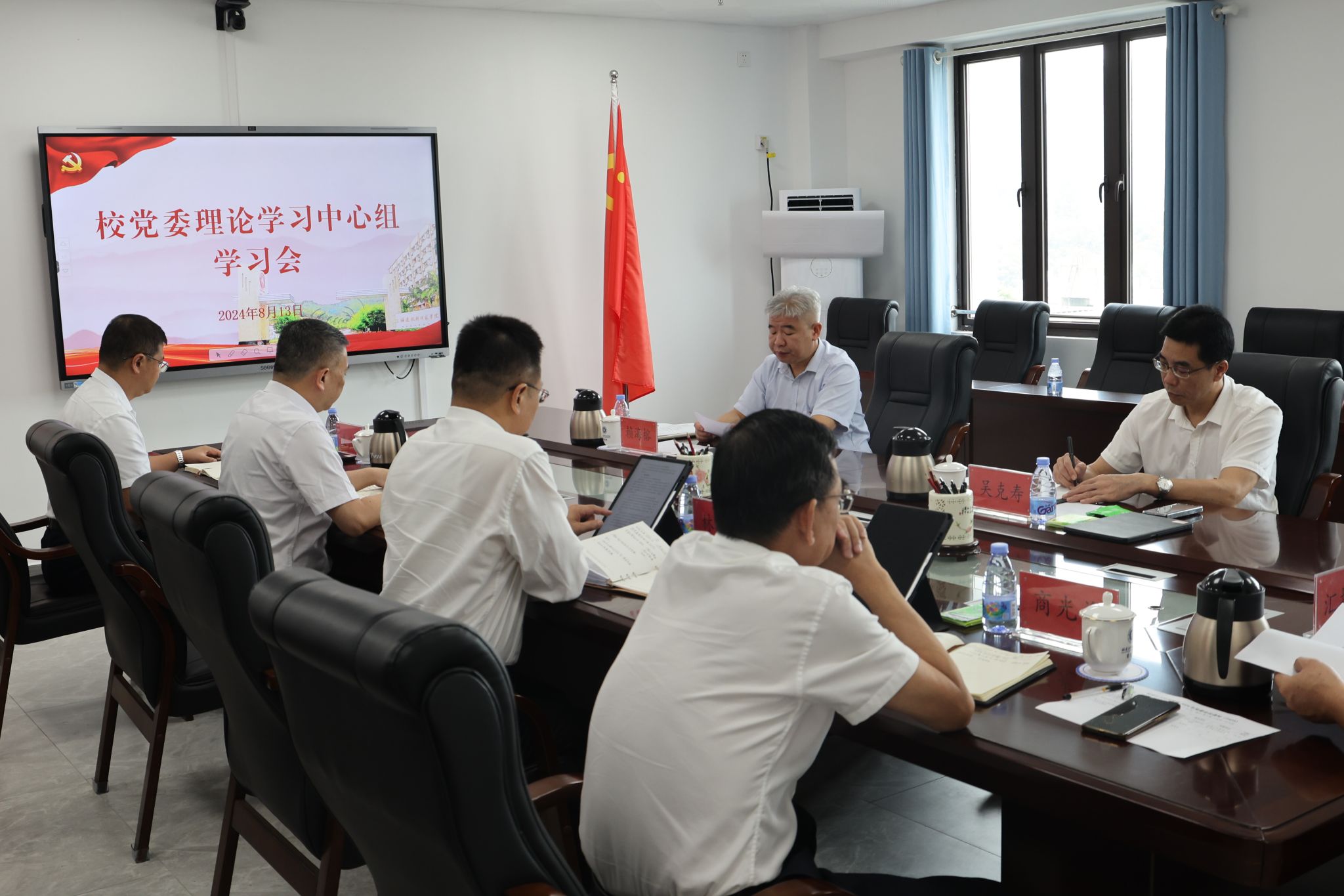 8月13日上午,校党委理论学习中心组在林联兴科技楼第一会议室召开集体学习会,专题学习习近平法治思想。校党委书记赖海榕主持会议并作了讲话,中心组成员吴克寿、林海峰、张翼、商光美、姜兴山等参加了学习会。