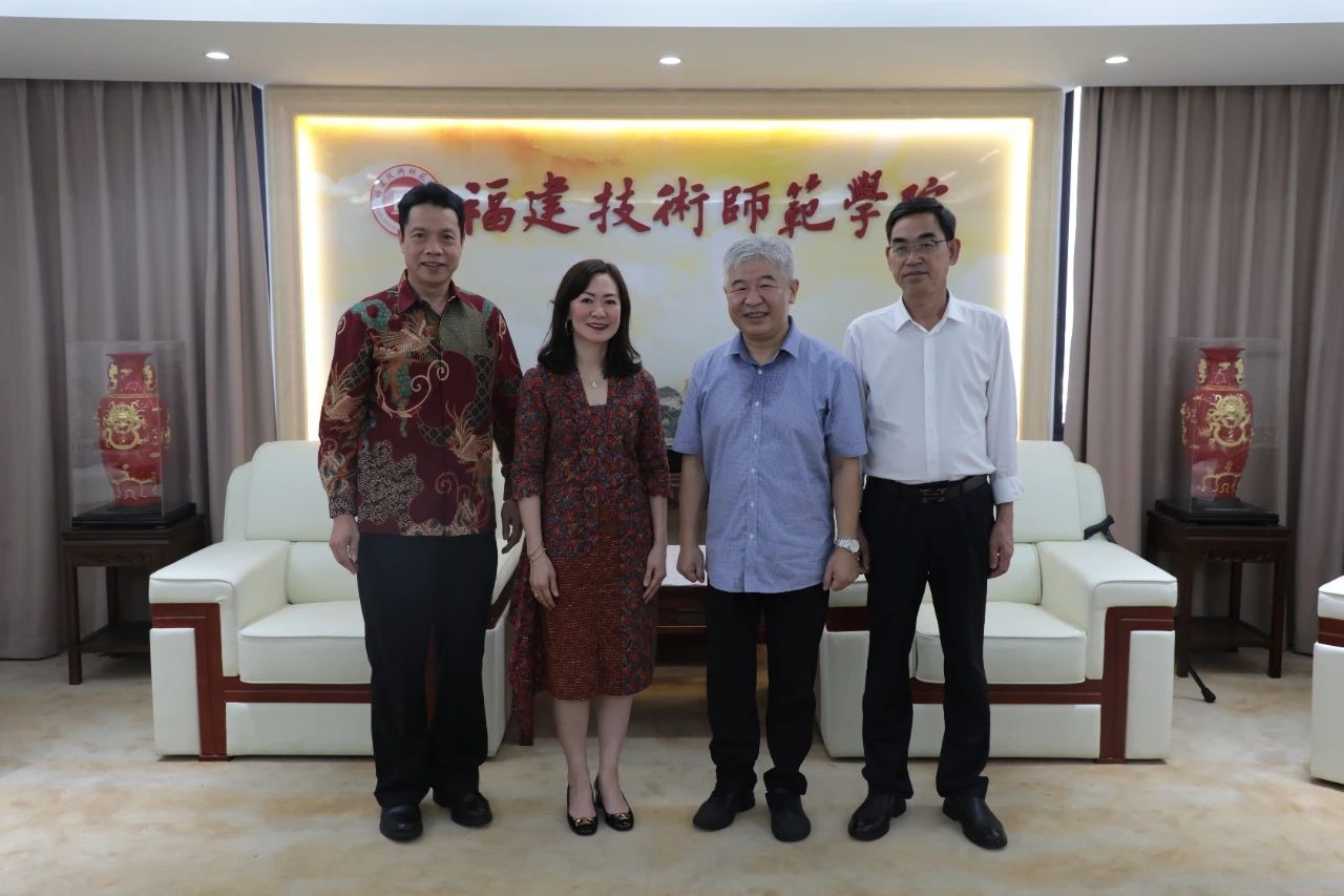 9月6日下午,布米塔玛农业有限公司执行董事、林联兴博士爱女林慧云(Christina Lim)及其先生朱昭常,雅加达福清公会副主席王朝盛等一行应邀莅校访问。校党委书记赖海榕、校长吴克寿热情接待了林慧云董事一行。副校长商光美、姜兴山,校党委统战部、校友会负责人,侨兴经济与管理学院负责人和教师代表,以及印尼学生代表参加了活动。