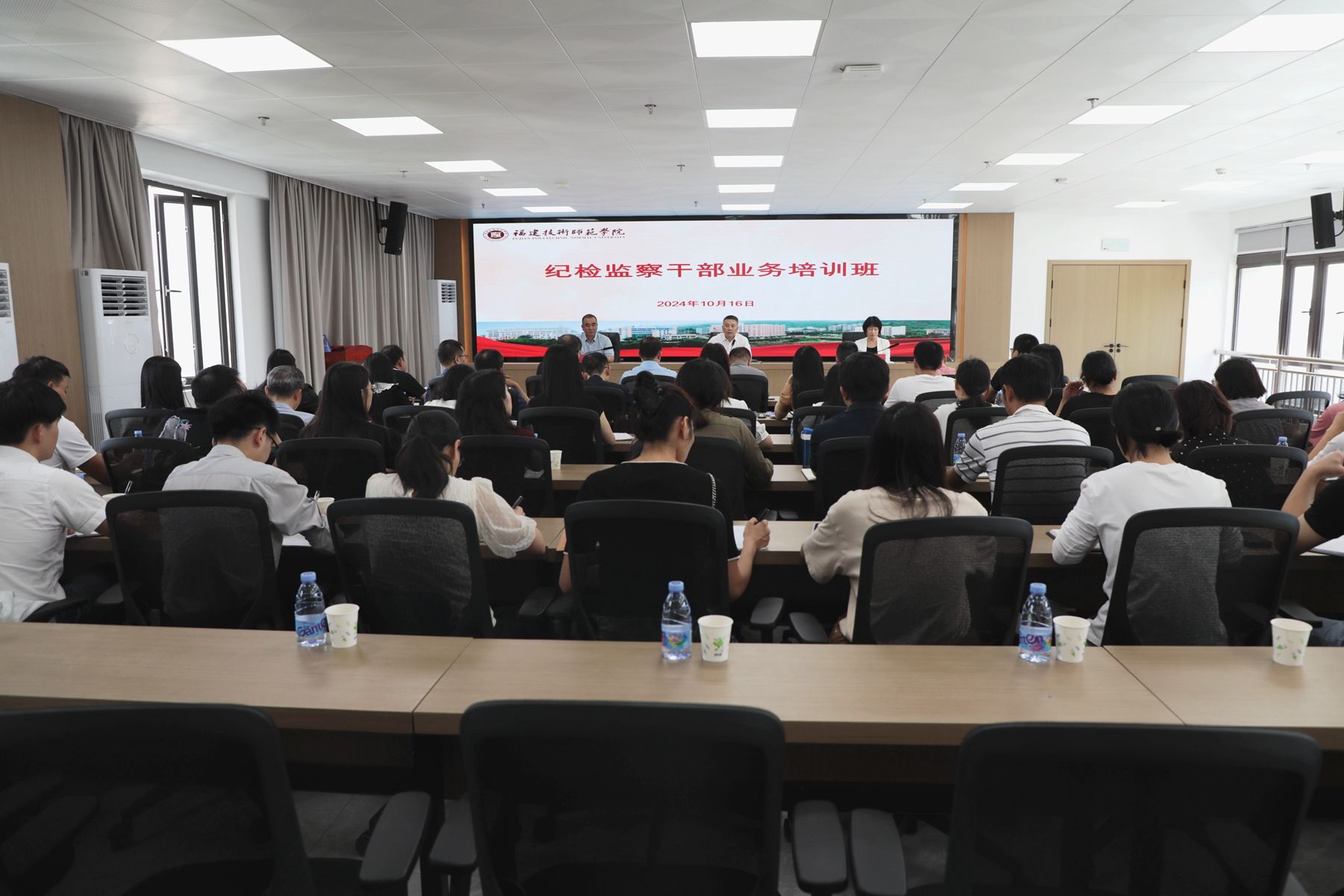 培训班邀请了省纪委监委第三纪检监察室副主任许荣标以及福建理工大学纪委委员、纪检监察室主任、党委巡察办主任沈水根作辅导报告,并组织观看了警示教育片。