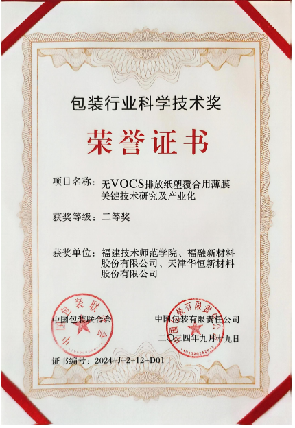 近日,中国包装联合会、中国包装有限责任公司发布2024年度包装行业科学技术奖评审结果,我校材料与包装工程学院《无VOCS排放纸塑覆合用薄膜关键技术研究及产业化》项目荣获二等奖。