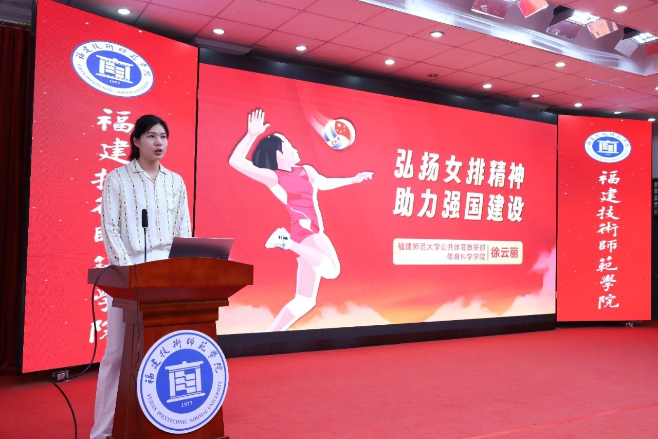 徐云丽以《弘扬女排精神 助力强国建设》为题,结合自身11年国家队运动生涯、3届奥运会参赛经历,运用丰富的案例和生动的语言,详细阐释了女排精神的深刻内涵、生动诠释和传承创新。她指出,作为被纳入第一批中国共产党人精神谱系的伟大精神,女排精神是中华民族精神在体育领域的生动体现,也是激励一代代中华儿女“使命在肩、奋斗有我”的精神源泉。她表示,在高校教师的岗位上,要将女排精神的育人之“盐”有机融入高校体育人才培养之“水”,教育引导新时代青年坚定“祖国至上”的爱国信念、涵养“团结协作”的优良品质、锻造“顽强拼搏”的过硬本领、锤炼“永不言败”的坚韧风骨。