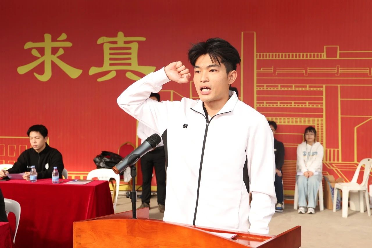 运动员代表2021级体育教育专业吴泽坤同学、裁判员代表2023级社会体育指导与管理专业黄颖杰同学分别代表运动员和裁判员宣誓。
