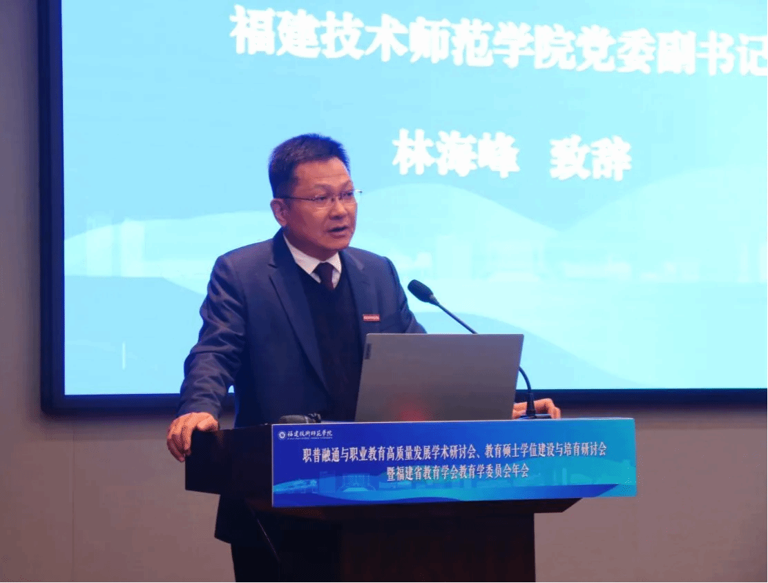 会议开幕式上,受校长吴克寿委托,校党委副书记林海峰代表学校致辞。他指出,学校作为职教师资培养的本科高校,紧紧围绕办学定位,为推进职普融通与福建职业教育高质量开展了一系列有益探索,并取得初步成效。他希望与会专家学者积极为学校教育学科建设和教育硕士学位点建设建言献策,助力提升学校学科影响力和服务福建职业教育高质量发展的能力。