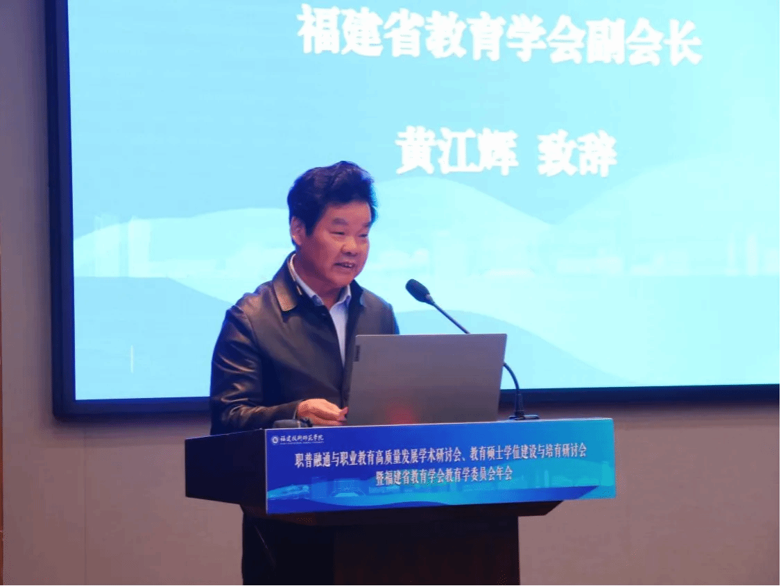 福建省教育学会副会长黄江辉在致辞中强调职业教育与普通教育融合的重要性,并介绍了福建省教育学会在职普融通方面的努力和成果。他希望通过本次研讨会的成功举办,为创新人才培养、教育融合和福建现代职业教育体系发展提供新路径、新方案,共同服务福建教育高质量发展。