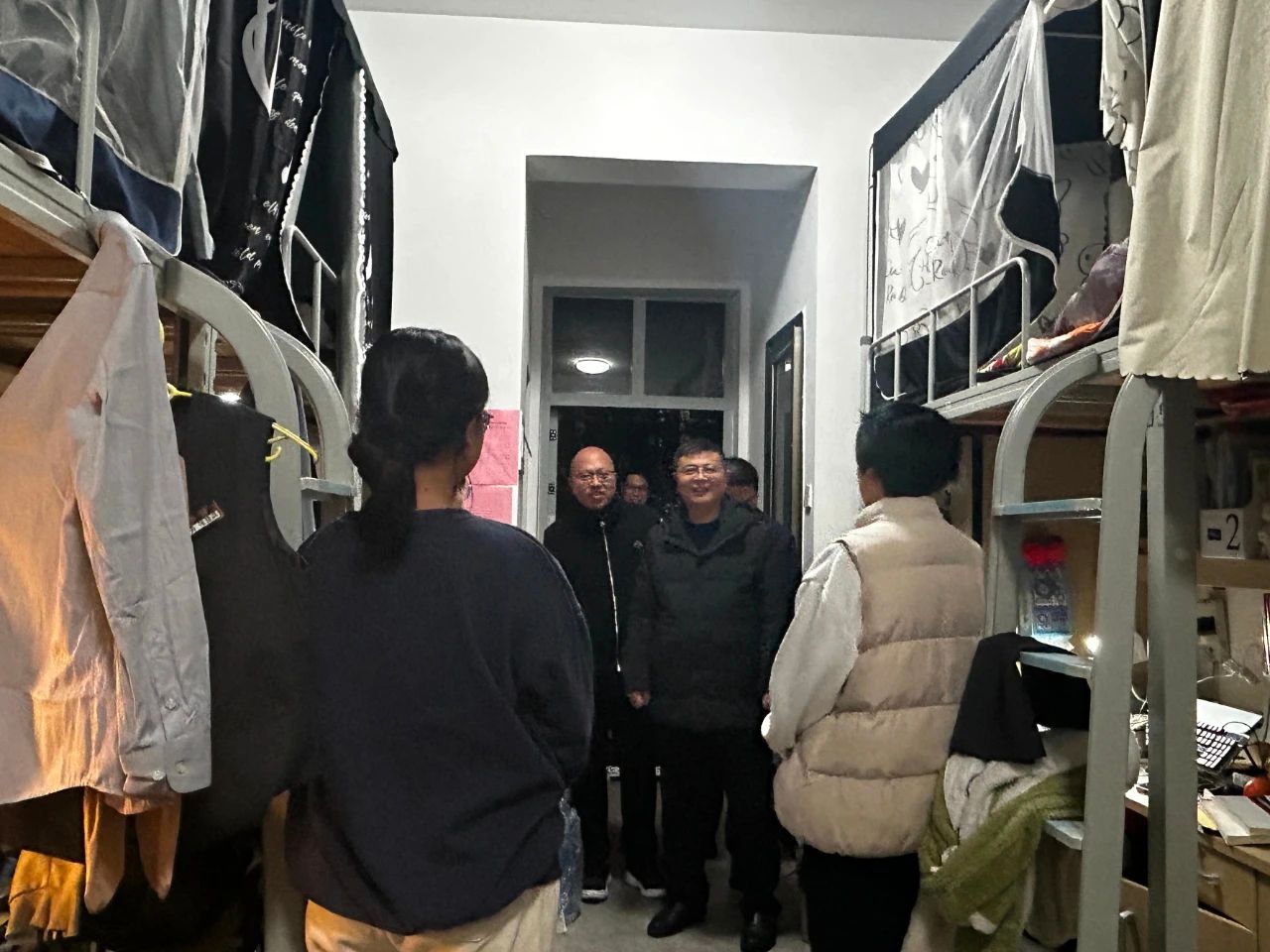 走访过程中,校领导与同学们进行了亲切交流,详细了解同学们在校学习、生活和就业规划等方面的情况与需求,并叮嘱同学们要夯实专业基础,培养广泛兴趣,努力提升自我,充分利用大学丰富的教育资源不断拓宽自己的视野,勉励同学们珍惜大学时光,以奋斗姿态迎接每一个挑战,用实际行动践行“请党放心 强国有我”的青春誓言,努力成为堪当民族复兴重任的时代新人。