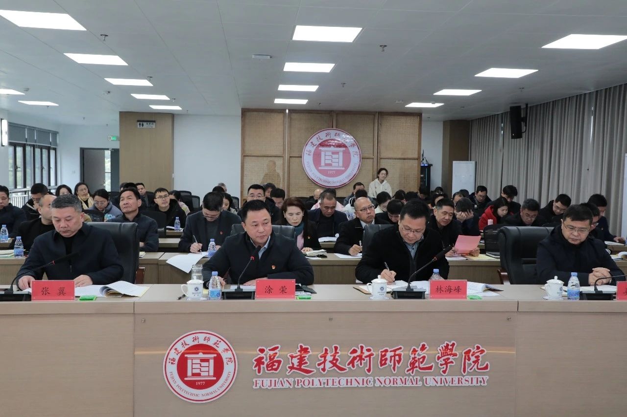 会议于3月7日上午在林联兴楼12层集贤厅召开。校党委书记涂荣出席会议并讲话,校党委副书记林海峰主持会议,在家校领导张翼、姜兴山出席会议。