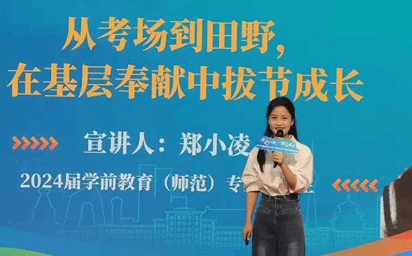 “基层是锤炼本领的‘练兵场’,在解决群众问题、处理具体事务的实践中,能收获书本之外的宝贵能力与‘被需要’的幸福感。”郑小凌以《从考场到田野,在基层奉献中拔节成长》为题,讲述了自2024年7月自己参加大学生乡村振兴计划以来的基层工作故事。她鼓励同学们要积极参与基层就业项目,在广袤的基层大地上,用奋斗的汗水浇灌青春之花。
