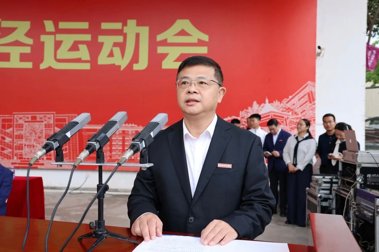 校党委书记涂荣宣布第三届体育节暨第38届田径运动会开幕。