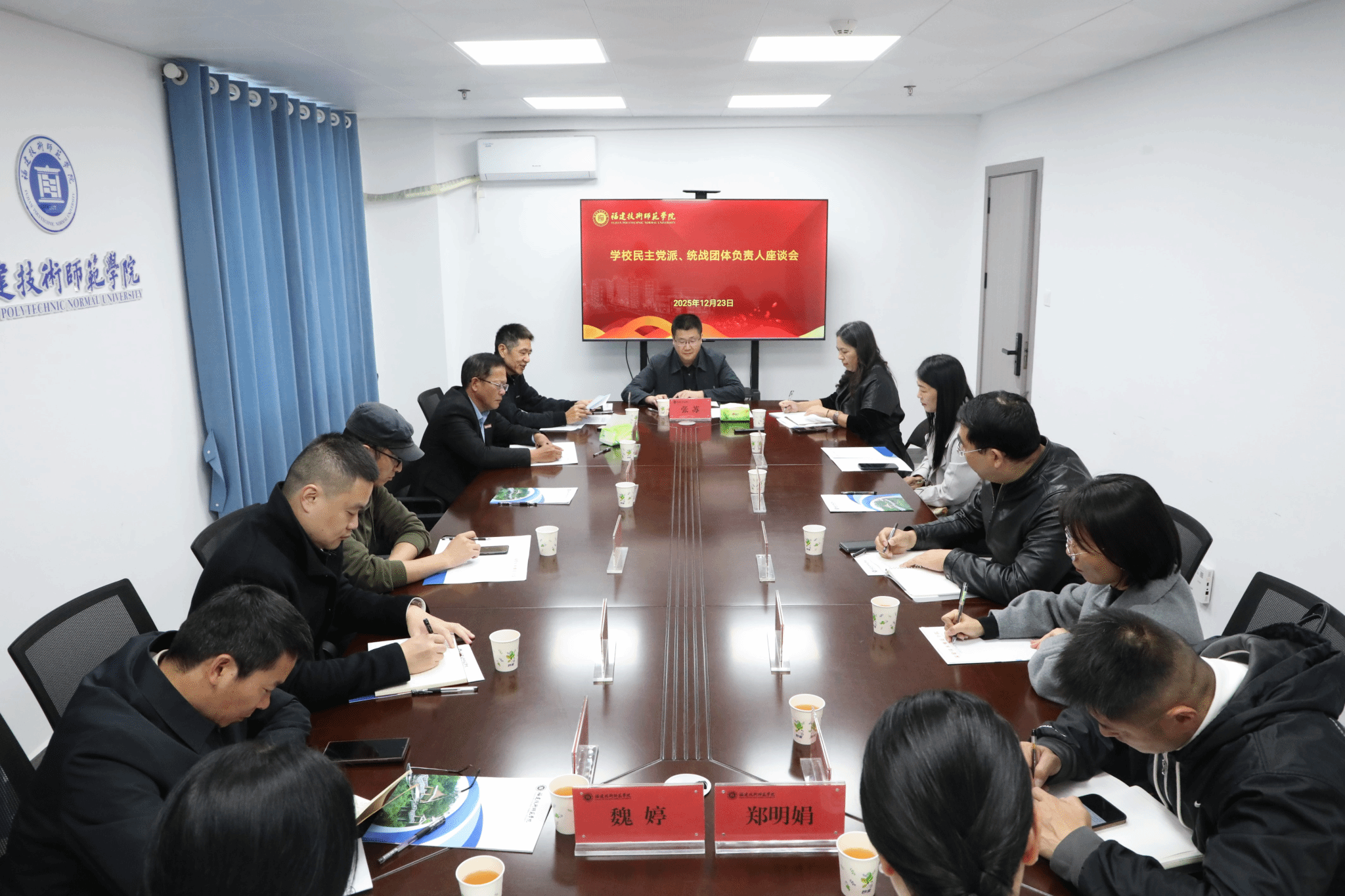 会议于12月23日在林联兴科技楼“统战之家”召开。校党委副书记张苏出席会议并讲话。我校民主党派、统战团体负责人参加座谈会。会议由校党委统战部负责人主持。
