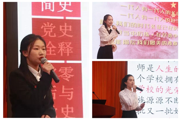 比赛现场,师生参赛选手从学习贯彻习近平新时代中国特色社会主义思想入手,围绕学习“四史”,传承红色基因,践行党员标准,担当党员使命,落实立德树人,厉行勤俭节约,弘扬伟大抗疫精神等方面,以身边人讲身边事,用小故事说大道理,案例鲜活生动,诠释精彩深刻,分享了学习心得、宣传了先进典型、传播了先进文化,针对性、感染力强,令人有感悟、有收获、受教育。