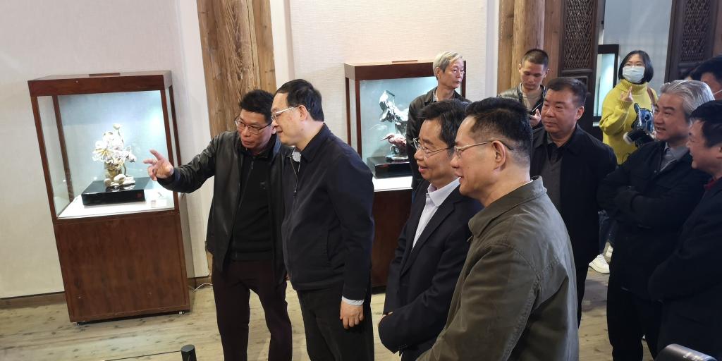 2月24日上午,“艺耀东南”——中国工艺美术大师陈礼忠师徒展在福建省海峡民间艺术馆开幕,专场展出我校工艺美术研究院院长陈礼忠教授及其弟子的精品力作。省人大常委会副主任严可仕,我校校长廖深基,民进省委会专职副主委林全金,省文联党组成员、书记处书记、省美术家协会主席王来文,海峡出版集团副总经理何强等共同为展览启幕。