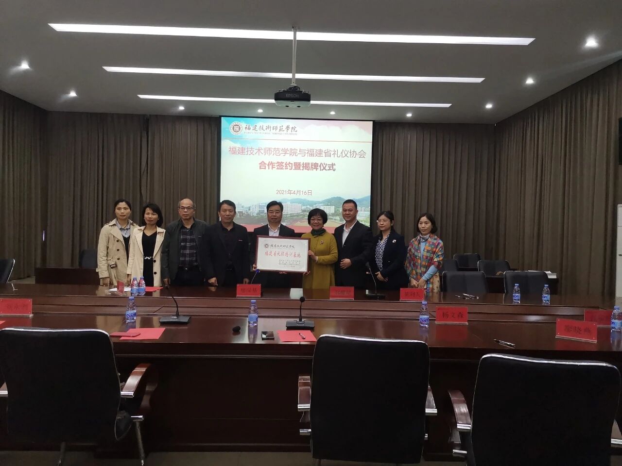 4月16日,我校与福建省礼仪协会合作签约暨“福建省礼仪培训基地”揭牌仪式在我校图书馆学术报告厅举行。校长廖深基与省礼仪协会副会长郑耀星共同为培训基地揭牌。省文明礼仪培训基地办公室主任黄利天、省礼仪协会秘书长廖晓燕、副秘书长王小平,我校经济与管理学院负责人、旅游管理与服务教育专业教师代表参加了揭牌仪式。