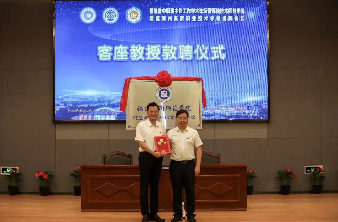 廖深基校长在致辞中表示,福建技术师范学院是我省唯一一所定位培养职业教育师资的本科高校,正立足区位优势、产业优势、政策优势、定位优势,致力建设成为福建省职业教育教师的培养摇篮。他指出,将漳州高新职业技术学校纳入附属校是学校贯彻落实习近平总书记关于职业教育的重要论述,深入推进职业教育育人方式和办学模式改革、加快构建特色现代职业教育体系的生动实践和重要举措。学校将通过建立合作共建机制、建设品牌强校、打造职业教育创新发展模式等途径为附属漳州高新职业技术学校实现高质量发展提供有力支撑。同时,学校将继续推进省职教联盟、省职教师资培训中心、省中职德育研究中心以及附属校、基地校等建设工作,着力形成人才共育、师资共培、基地共建、科研共促、资源共享、事业共推的发展共同体,加快形成具有鲜明特色的职业教育发展模式和改革经验,助力福建职教高质量发展。
