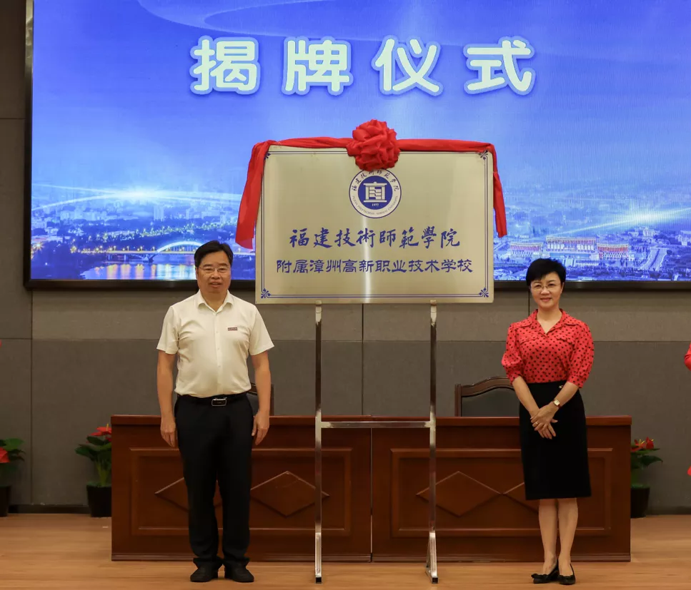 8月2日,福建技术师范学院附属漳州高新职业技术学校揭牌仪式在漳州举行。我校校长廖深基、副校长陈志勇,漳州市人民政府副市长余向红,漳州市委教育工委书记、市教育局党组书记、局长黄江辉,漳州市委高新技术产业开发区党工委书记苏孝道,漳州高新职业技术学校党委书记、校长赵为船等出席了揭牌仪式。