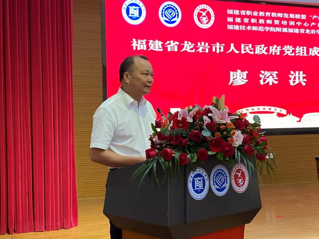 廖深基校长在致辞中简要介绍了学校基本情况和办学定位。他指出,福建省龙岩华侨职业中专学校是一所根植于红色土地,办学实力强、办学质量高的职教名校。将龙岩华侨职业中专学校纳入附属校,与行业龙头企业签订产教融合合作协议,是我们落实习近平总书记关于老区苏区工作重要指示要求以及习近平总书记来闽考察重要讲话精神,深入推进职业教育育人方式、办学模式改革,倾力支持老区苏区高质量振兴发展的生动实践和重要举措。他表示,学校将充分发挥学科、人才、平台等资源优势,助力附属龙岩华侨职业中专学校建设成为一所红色基因突出、类型特色鲜明、办学质量领先的品牌强校。他希望附属龙岩华侨职业中专学校弘扬苏区精神,传承红色基因,与我校一道,在推动福建职业教育改革发展上作新贡献,在全方位推进闽西革命老区高质量发展示范区建设中展现新作为。