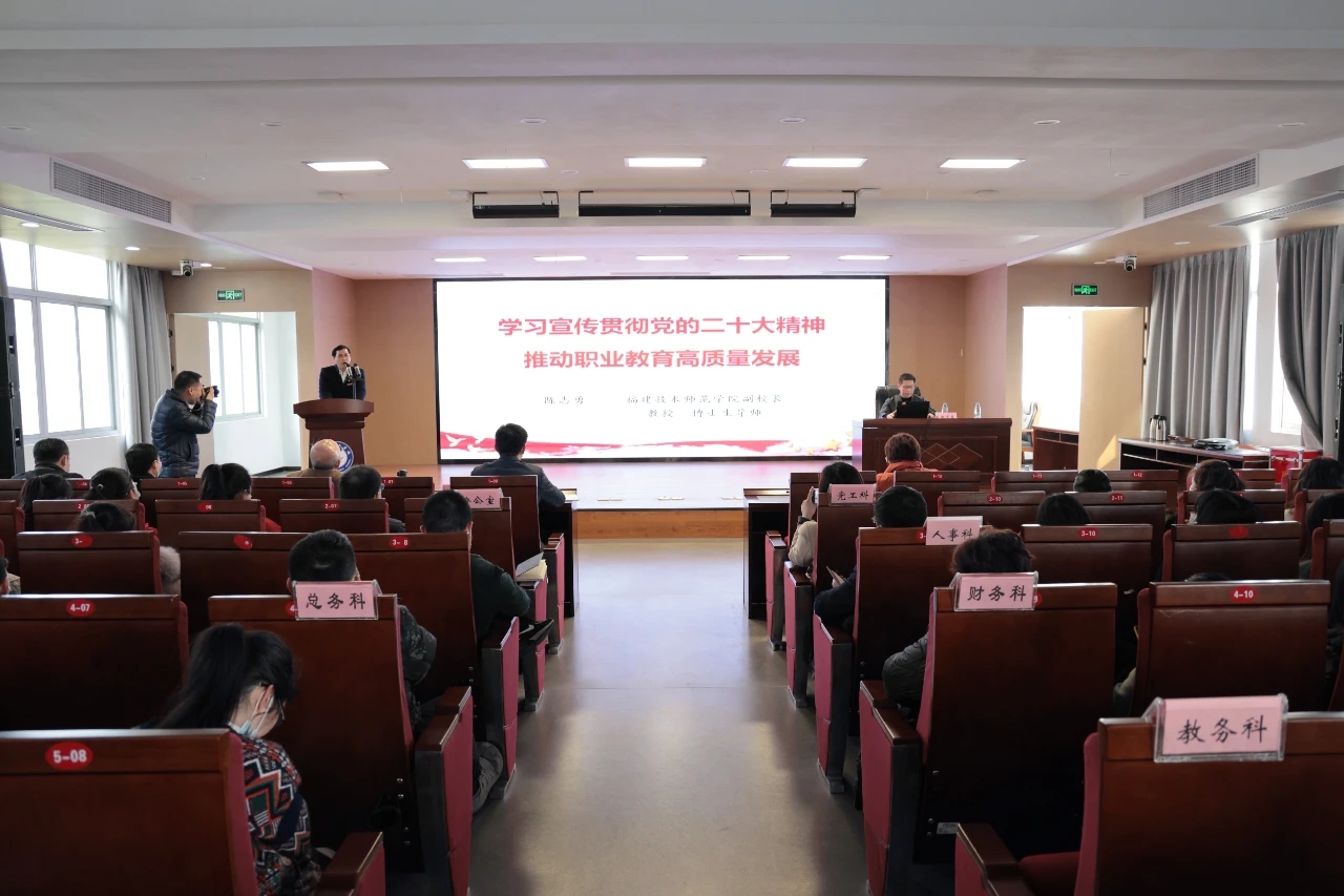 2月24日下午,我校学习宣传贯彻党的二十大精神职业院校宣讲团首场宣讲报告会在中职基地校福建理工学校拉开序幕。宣讲团副团长、副校长陈志勇教授带领宣讲团成员深入职教师生中开展宣讲。