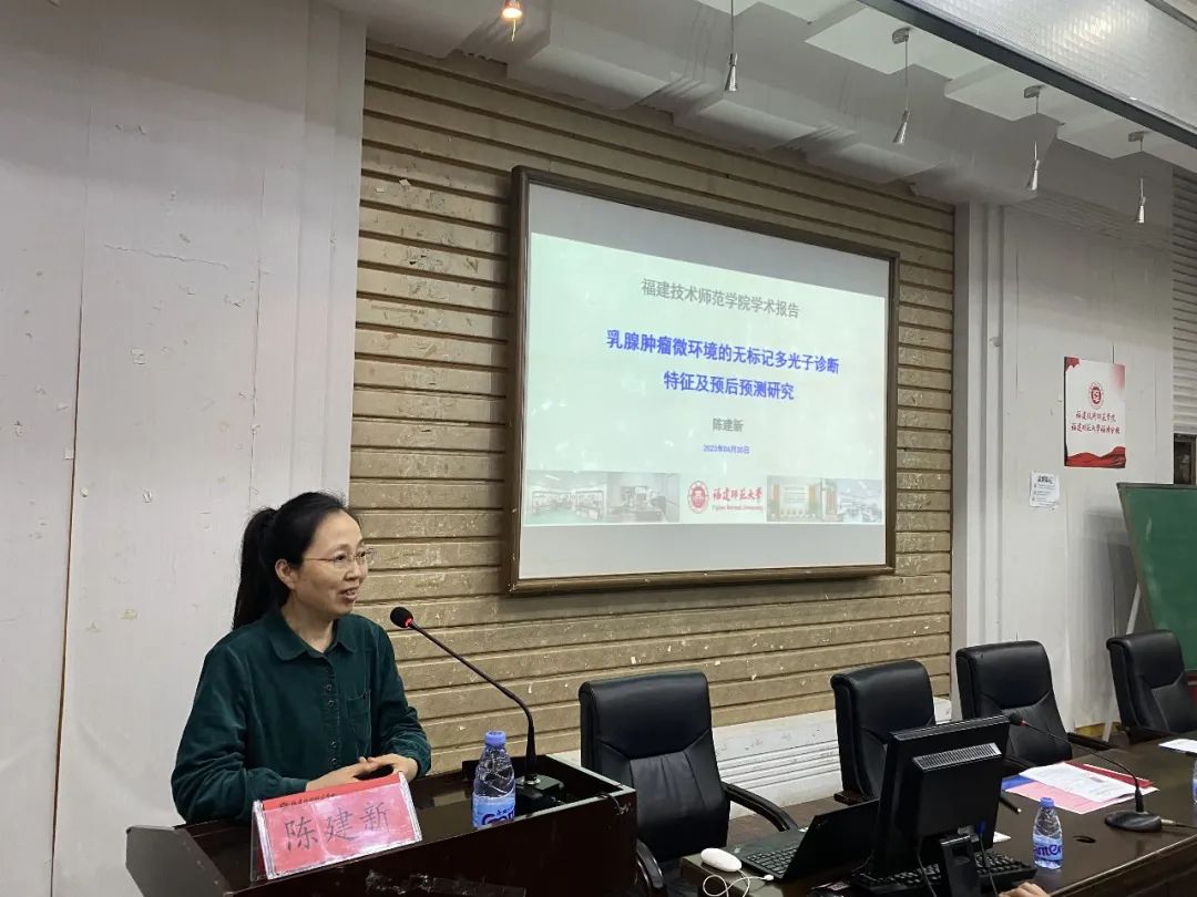 聘任仪式结束后,陈建新教授为师生作了题为《乳腺肿瘤微环境的无标记多光子诊断特征及预后预测研究》的讲座。(电子与机械工程学院)